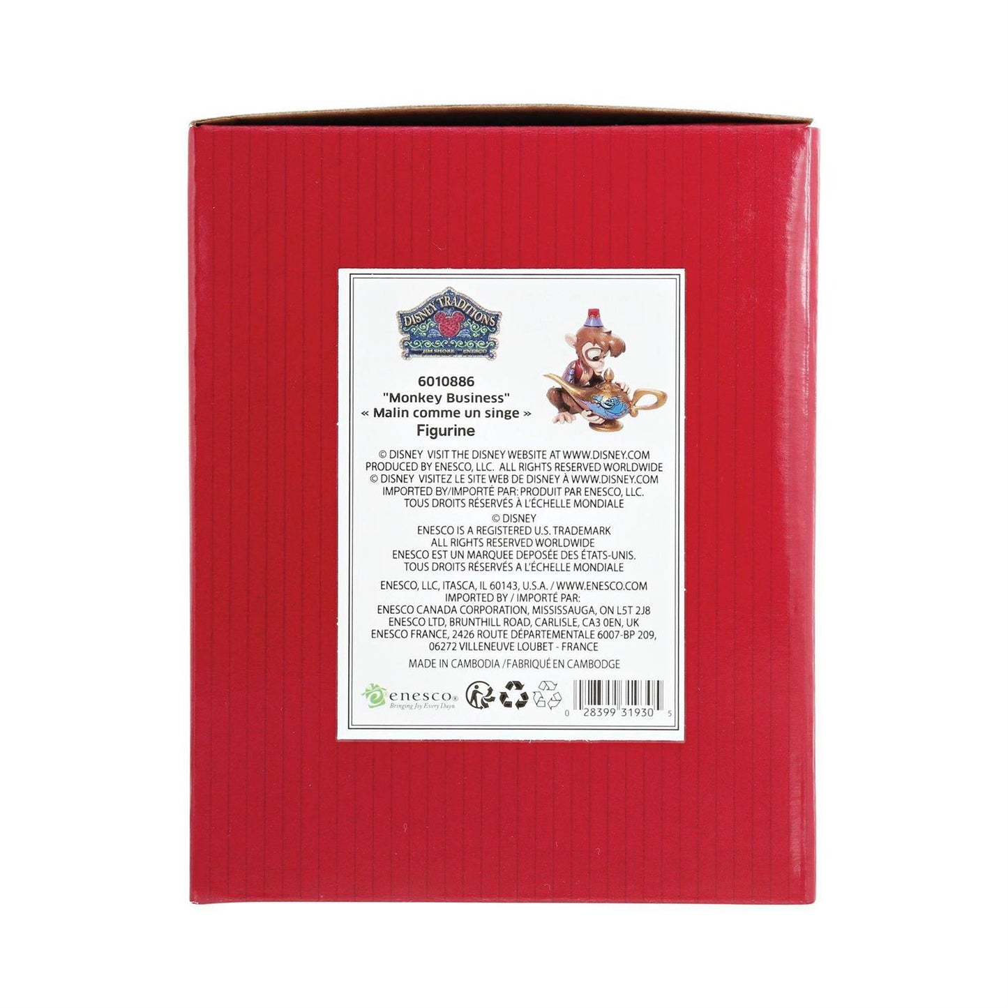 Abu, Aladdin's curious monkey friend, has gotten his hands on the magic lamp in this beautiful Jim Shore character sculpt. Enchanted by the secrets held within the lamp, Abu rubs his tiny paw upon the metal revealing the gregarious blue Genie inside.