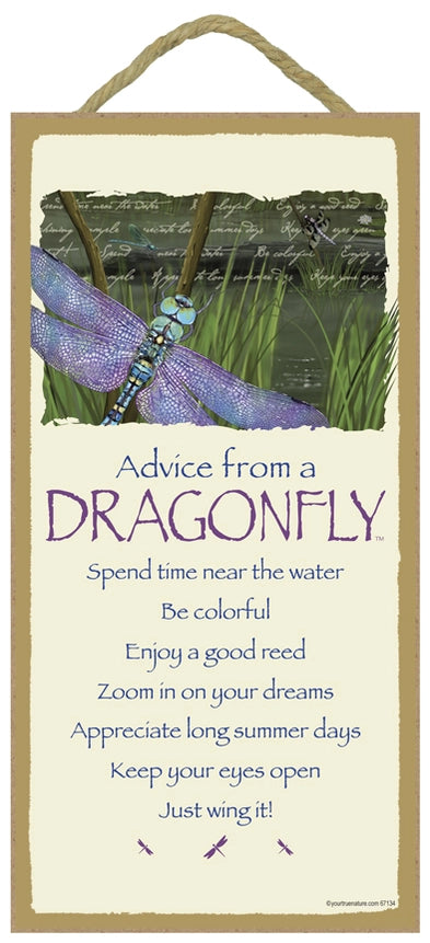 Advice from a Dragonfly Wood Sign. Spend time near the water..