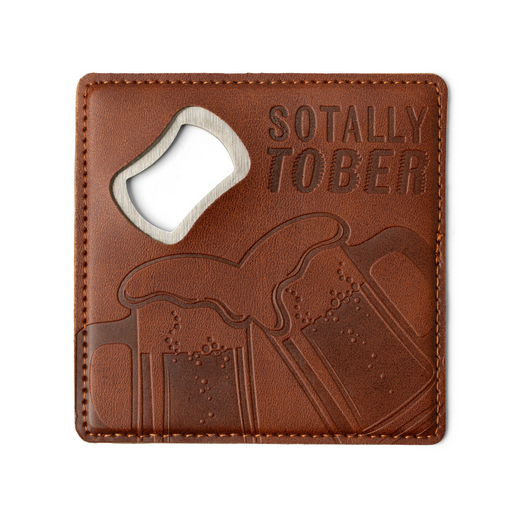 Ready to make some pour decisions? Designed for customers to easily build their own set, these vegan leather coasters have a steel core to conveniently take the tops off any brew. Assortment includes six embossed designs perfect for gifting!