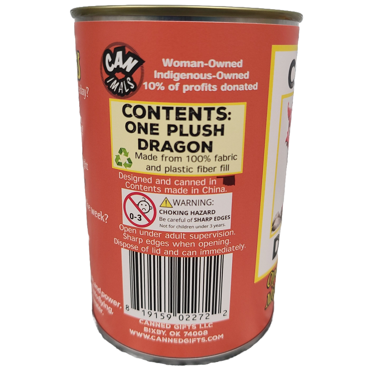 About this can: Meet Drake the Canned Dragon! Included is 1 plush dragon sealed in a can. Pop top lid Plush measures approximately 5 inches. Funny dragon jokes and interesting facts on the can.