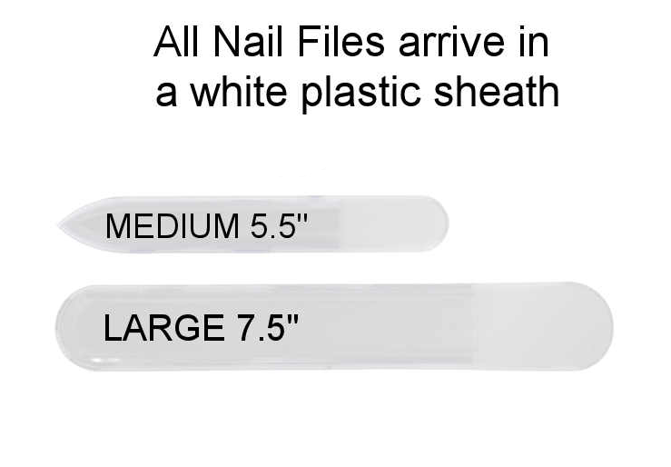 COLORS ARE RANDOM AND VARY. Glamorous, yet durable hand painted, crystal glass nail files come in two sizes. Medium (5.5") for everyday and Large (7.5") for feet and pedicures! These are the gifts that give the finish of a lifetime, for a lifetime. Perfect for gifts, teachers, stocking stuffers or for yourself! Our European crystal files feature a filling surface etched permanently in the glass for a superior longevity and performance. The crystal is tempered and hardened, making it 74% stronger than ordinary glass. Files are double sided, easily sterilized, and give a superior finish on natural and artificial nails. A clear plastic sheath is included with every nail file. We are proud to inform you that all our hand painted designs are painted by local artists right here in Grand Rapids, Michigan (USA)!