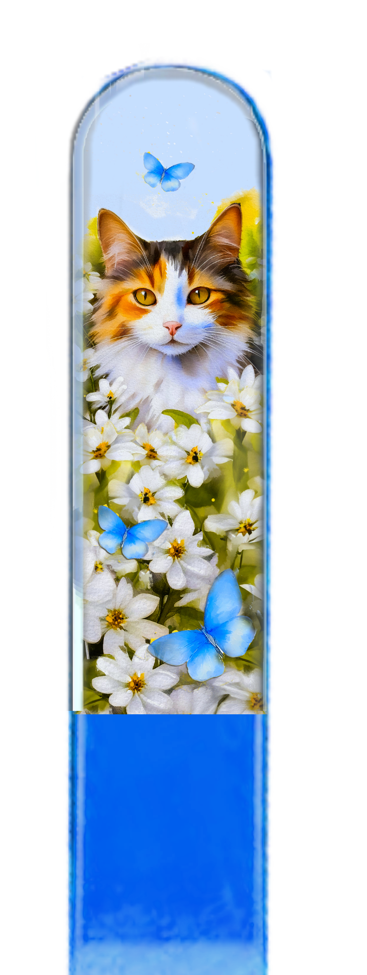 Calico Cat Flowers 3D Pet Colored Czech Crystal Nail File : Large