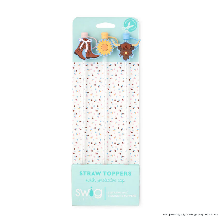 Sip in style while keeping your drinks clean and safe with our adorable Straw Topper Sets! This set features three reusable straws with whimsical silicone charms featuring protective caps. Keep them all for yourself or share them with a friend!