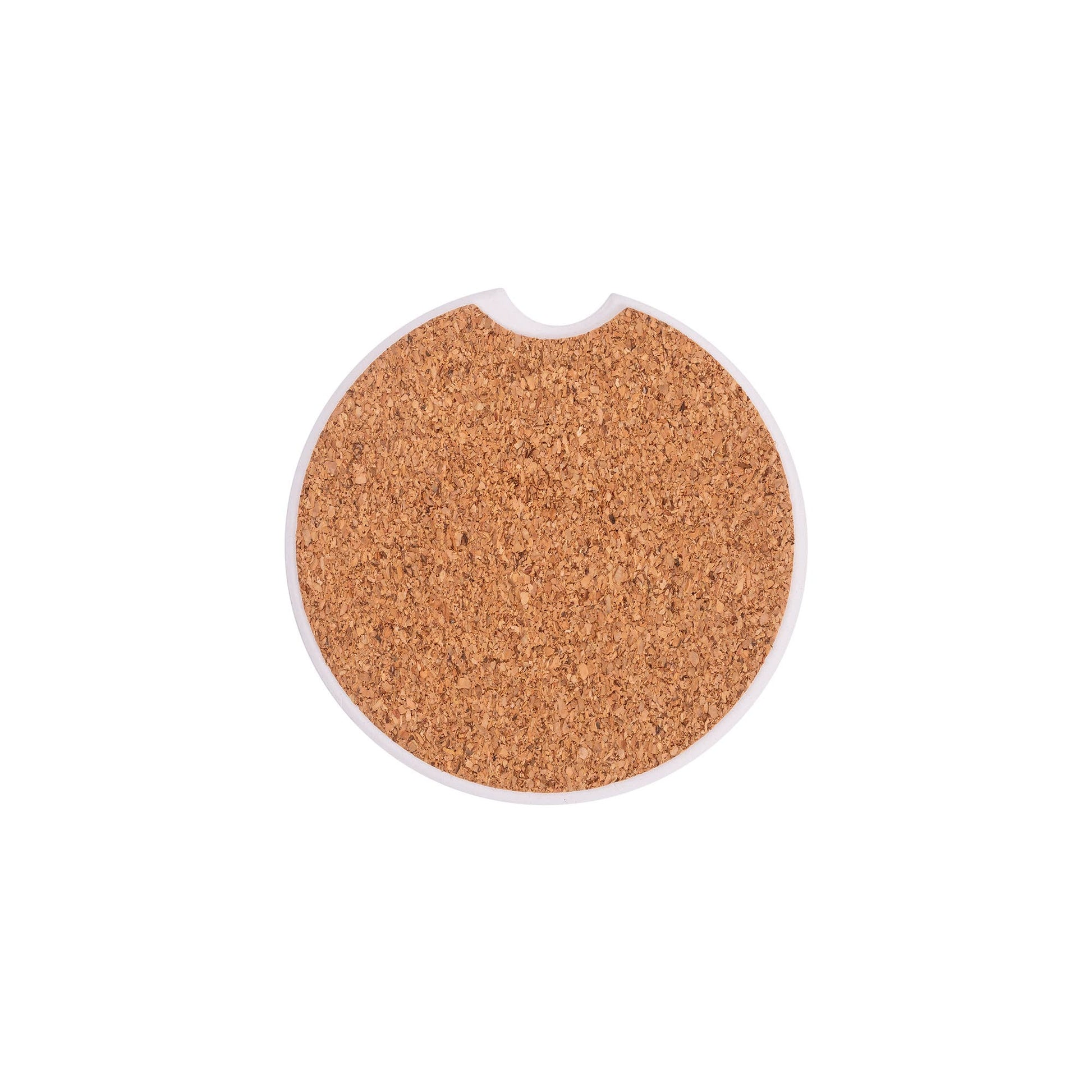 Keep your car clean with this 2.641" diameter dolomite coaster featuring a cork backing for added protection.