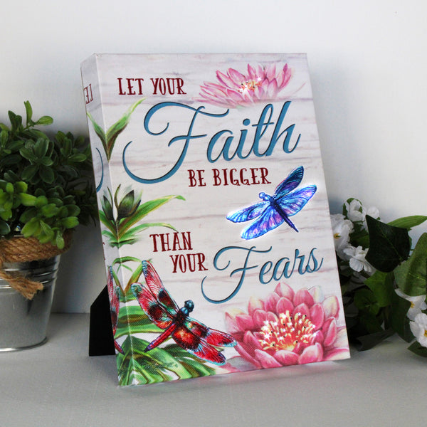 - Lighted Tabletop Canvas 8x6 - Faith Dragonflies