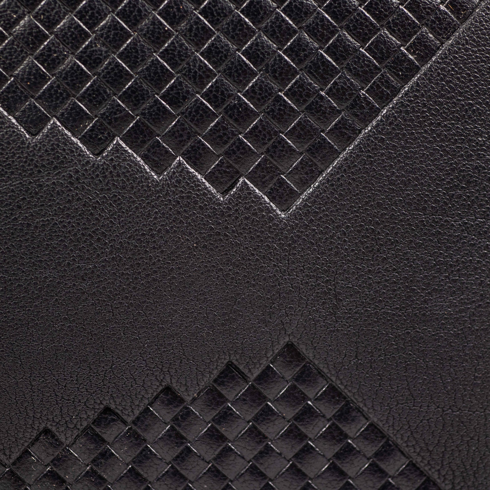 Billfold style black wallet with textured exterior. Material: vegan leather. Slim profile makes it perfect for front or back pocket storage. Exterior hatch weave texture adds design interest. Functional interior including bill, credit card, and i.d. Holders. Dimensions: 4.75" x 1" x 3.5".