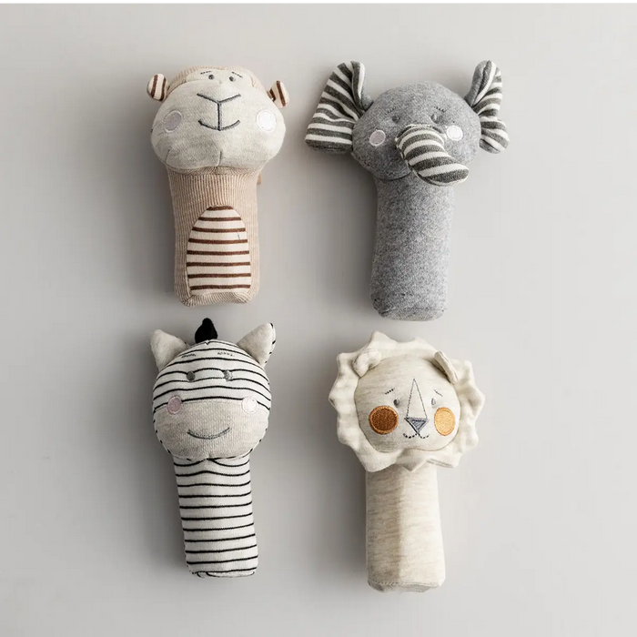 This precious Noah's Ark plush toy set has four removable plush animal toys with squeakers. This set makes a great decor piece for the nursery and will provide your growing baby with so much fun.