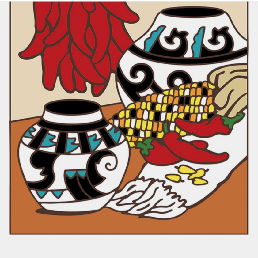 Add a touch of the Southwest to your home with this 6"x6" hand glazed decorative tile, featuring painted pottery with maize and chilis.
