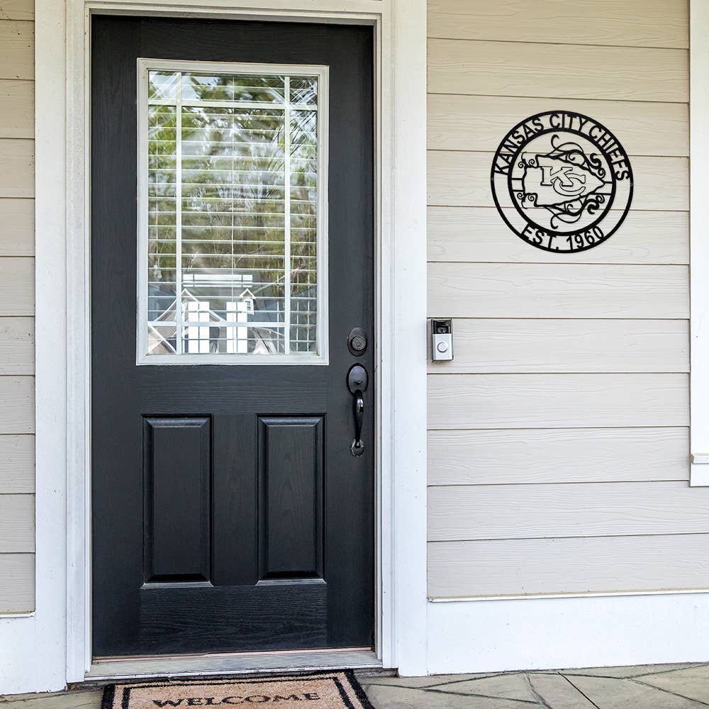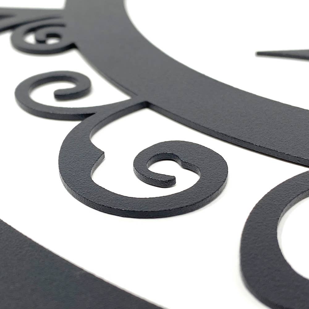 This attractive laser-cut metal sign is perfect for any room inside or outside your home! 15” diameter. 100% heavy-duty iron. Highly-detailed rustic filigree design. Powder-coated satin finish. Easy to install with included screws and anchors.