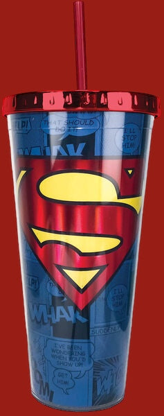 This Superman Foil Cup with Straw is the perfect choice for fans of the Man of Steel. This sophisticated cup is made of foil with an intricate Superman logo print, so you can quench your thirst with a touch of superhero style. The included straw ensures you can enjoy your favorite beverages without spillages. Enjoy!