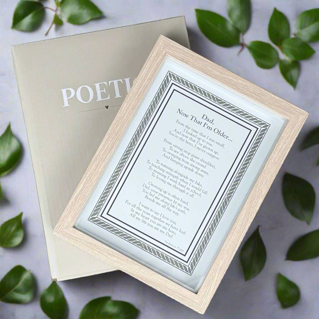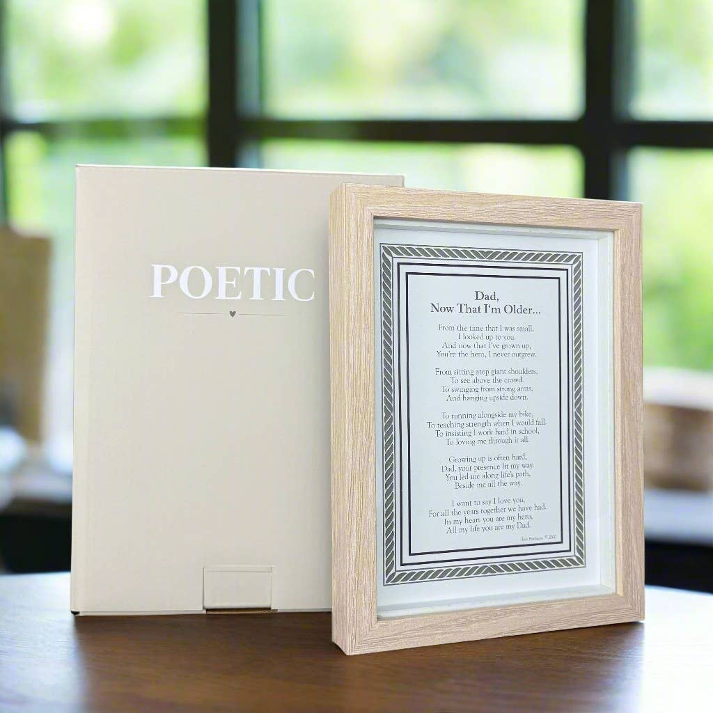 A touching sentiment for Dad framed in a natural toned shadow box style frame for table or wall display. Classic border frames meaningful words from a grown son or daughter to Dad. The perfect little frame for Dad to sit on a desk, shelf or table, anywhere Dad can read over and over again. A memorable gift for Dad for Father's Day, birthday, holiday, or any other special time you want to let him know you love and appreciate him for all he has done, such as a wedding or graduation.