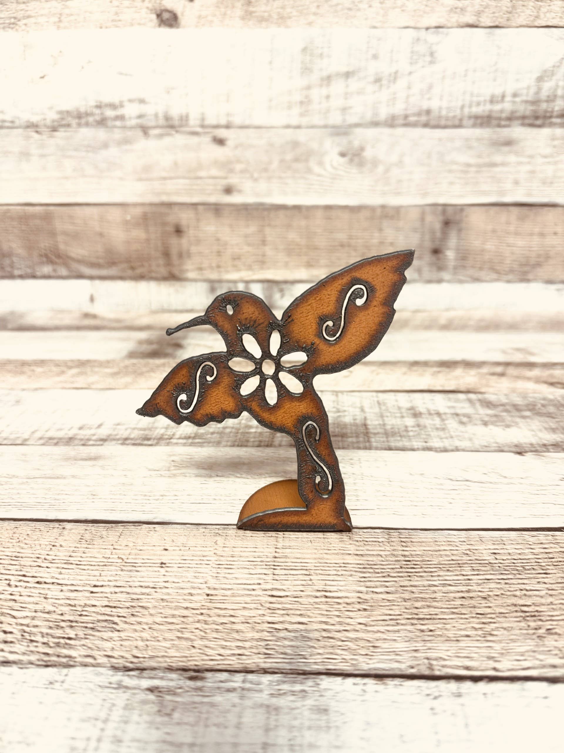 Hummingbird Garden Friend Rustic Metal Standing Figurine
