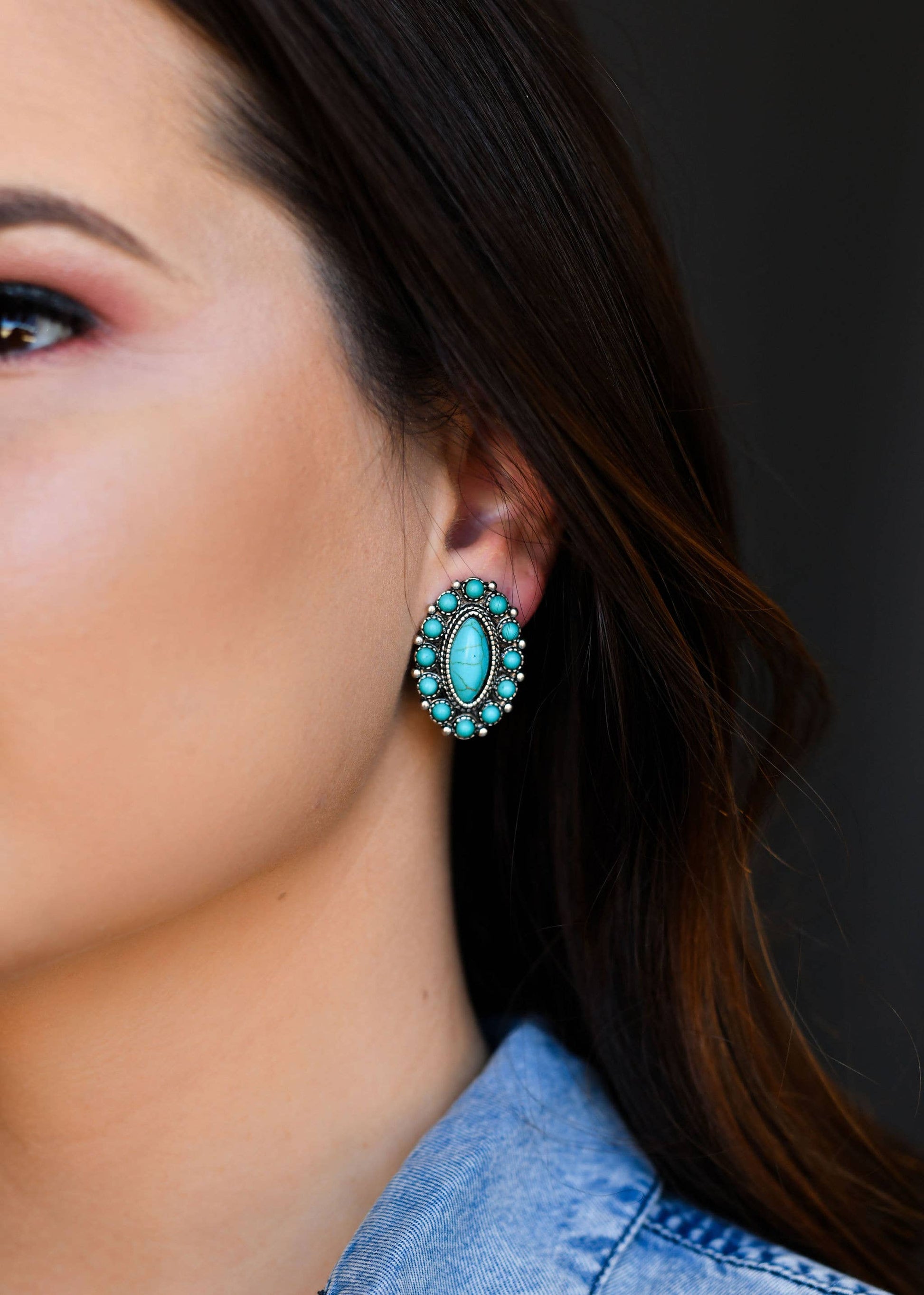 Concho Style Turquoise Post Earrings