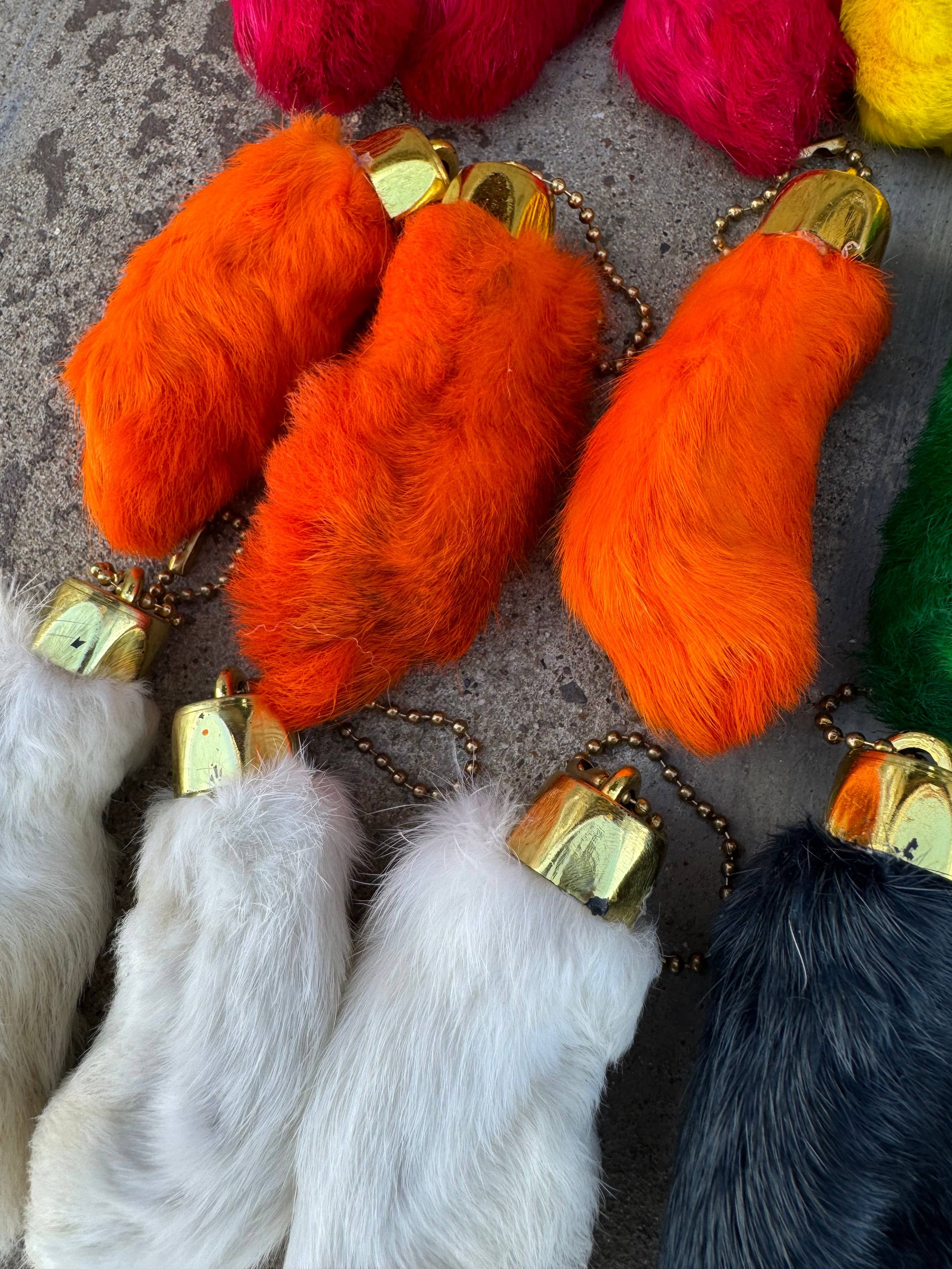 Each rabbit foot is genuine and unique so they will have imperfections and vary in size and more.