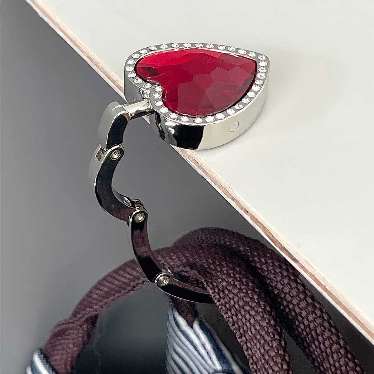 Use this Heart Shaped Purse Hook Hanger to hang up your purse whenever you go out! When not in use, it can be folded up and stored away in your handbag. Made out of zinc alloy, this purse hook hanger is nickel, lead, and cadmium free. It is attractive as well as efficient; the heart is a juicy pink color and is surrounded by rhinestones. The folding hook has a magnetic closure and is roughly 2.75 inches long. Use this purse hook hanger on tables at bars and restaurants instead putting your purse on the floor where it can get dirty or stolen. * Dimensions: 1.25"L x 1.5W, hook 2.75 inches when extended. * Material: Zinc Alloy, Rhinestone.