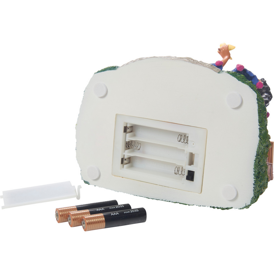 - Measuring approximately 6” H, this lighted figurine is carefully crafted of resin and is skillfully hand-painted. 3 AAA batteries included.